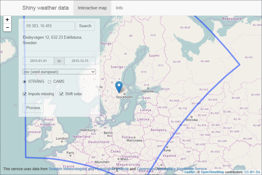 Shiny Weather Data is a web service making different sources of European gridded climate data available in hourly time series formats used by common building performance modeling tools. This web service has been around for a while and has a steadily growing user group of professional building modelers as well as students and researchers.
