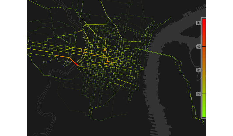 See the dodgr documentation for further details of how this works. We’re now ready to plot those flows, but before we do, let’s overlay them on top of the rivers of Philadelphia, extracted with rOpenSci’s osmdata package.
